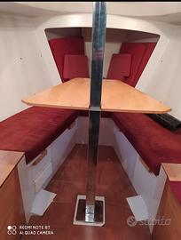 Barca da regata registrazione ORC , scafo Felci, ottimizzata crociera. Architettura navale: FelciYachtDesign Design&Layout: Coupè Design Categoria di navigazione: B Omologazione: 8 persone Lunghezza m 9,00 Lunghezza galleggiamento m 8,35 Baglio m 3,15 Immersione massima m 1,88 Dislocamento Kg 2150 Serbatoio acqua dolce l 80 Serbatoio acque nere l 47 Serbatoio gasolio l 35 Randa mq 30,2 Fiocco mq 20,6 Gennaker mq 85 La coperta è caratterizzata da una tuga corta e avanzata e da un pozzetto di dimensioni incredibili dotato di ogni confort: spiaggia mare 1,2x0,6m doccia esterna luce boma altoparlanti stereo esterni strumentazione wifi Tacktick seduta timoniere abbattibile bitte abbattibil tavolo esterno removibile per 7/9 persone elica a pale 2 abbattibili motore Lombardini eb 13 cv completamente manutenuto e affidabile. Gli interni sono curati con finiture in faggio naturale e altezze mai inferiori a 1,8m: la dinette, gia illuminata dai grandi oblò in coperta, è servita da suggestive finestre a scafo e ha il tavolo abbattibile che si trasforma in un ampio letto matrimoniale; il bagno, grande e con altezza superiore a 1,8m, ha la doccia elettrica estraibile e la cassa acque nere; la scala d'ingresso, in faggio e acciaio lucidato come il puntello dell'albero, è incernierata permettendo un facile accesso vano motore; la cabina, con armadio e luci da lettura orientabili, ha una letto matrimoniale da 2,15x1,4m. Sartiame nuovo. Spiaggetta richiudibile. Ancora giubbotti e dotazioni entro le 6 miglia, Caricabatterie, inverter, 2 batterie, 220 e 12 volt, pilota automatico Raymarine 1000 plus. Cagnaro e tendalino. Tutte le manovre rinviate in pozzetto, facile conduzione anche con equipaggio ridotto. Missile.