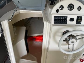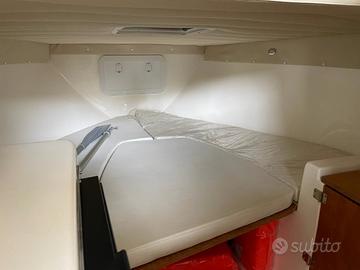 Completa di frigorifero interno ad incasso, tendalino a 3 archi, tavolo di poppa, doccetta con serbatoio da 50 litri, verricello elettrico lewmar, radio con casse, telo copri consolle e seduta.