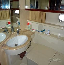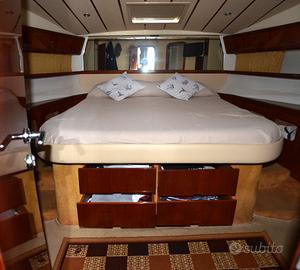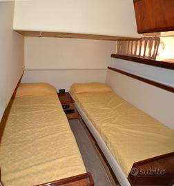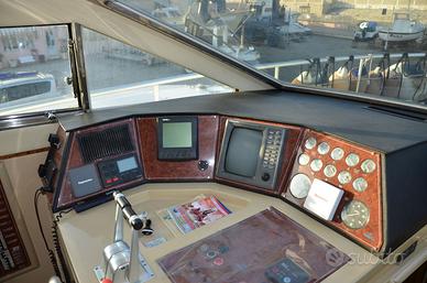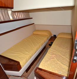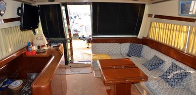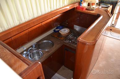 Anno 1996 Lunghezza f.t. mt 15,46 (13,98 libretto) Larghezza mt 4,50 2 X 600 MTU Ore di moto 2250 Nel 2022 sbarco motori e revisione esterna: turbine, scambiatori, manicotti, iniettori, pompe - Manette nuove Pozzetto e plancetta di poppa nuovi 2022 Gasolio lt 1600 Acqua lt 750 Strumentazione elettronica di navigazione: Angolo barra, Antenna radar, Bussola, Ecoscandaglio, GPS, Pilota automatico, Radar, Radio VHF Allestimento tecnico e di coperta: Allarme motore, Allarme sentina, Ancora, Autoclave,Batterie,Caricabatterie Elica di prua - bow thruster 2 x Flap idraulici, Indicatori Flaps Passerella (idraulica) Pompa di sentina automatica Pompa di sentina elettrica Pozzetto Teak Presa 220V banchina Salpa Ancore Elettrico Tender (e motore) Tromba Winch tonneggio di poppa Dotazioni di bordo Aria condizionata, Boiler, Prese interne 12v, Prese interne 220v, WC marino elettrico Intrattenimento Antenna Satellitare TV,Impianto TV, Stereo,TV Cucina ed elettrodomestici Cucina, Frigorifero esterno, Frigorifero interno, Microonde Tappezzerie Cuscineria completa Teli copri finestra Telo copriconsolle Telo coprisedile Tendalino Strumentazione elettronica di navigazione: Angolo barra, Antenna radar. Allestimento tecnico e di coperta: Allarme motore, Allarme sentina, Autoclave, 2 Flap idraulici, Indicatori Flaps, Passerella (idraulica), Pompa di sentina automatica, Pozzetto Teak, Presa 220V banchina, Salpa Ancore Elettrico, Tender (e motore), Tromba, Winch tonneggio di poppa. Dotazioni domestiche di bordo: Boiler, Prese interne 12v, Prese interne 220v, WC marino elettrico. Intrattenimento: Antenna Satellitare TV, Stereo. Cucina ed elettrodomestici: Cucina, Frigorifero esterno. Tappezzerie: Cuscineria completa, Teli copri finestra, Telo copriconsolle, Telo coprisedile, Tendalino