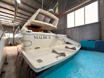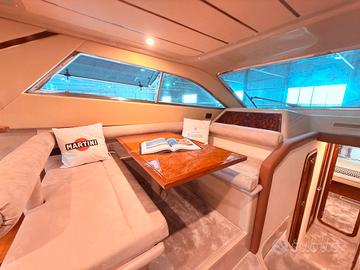 Anno 1994- motori 2x 670MTU Tantissimi lavori svolti 2024/2025. Tenuta in perfette condizioni. Posti letto 7: cabina armatore, cabina doppia in piano, cabina doppia in piano con 1 letto singolo e 1 da una piazza e mezzo. Scendendo ai due lati a centro barca le cabine ospiti: la cab. di sx è una tripla; dispone di un matrimoniale alla francese e un letto singolo. La cabina di dx ha due letti gemelli,(trasformabili in matrimoniale); a loro uso un bagno. doccia XL. A prua la cabina Armatoriale con bagno interno. I bagni sono veramente confortevoli, ampi, alti e spaziosi, quello dell’Armatore è il più ampio. Tutti con box doccia e bidet all’Italiana. Doppia dinette con salone e sala pranzo, cucina in basso, Cabina equipaggio con servizio. 2 Comando motori elettronico + Yacht controller Imet 2024, Elettronica di navigazione full GARMIN in plancia interna e sul Fly nel 2024, 2 Display (Garmin multifUnzione), Gps Navigatore, Radar, Eco, Log; in plancia Strumentazione elettronica di navigazione ripetuta integralmente sul Fly (Display maxi Garmin),2 Pilota automatico (fisso e con telecomando da remoto), 2 Radio VHF (Garmin con altoparlante esterno), 2 Telecamera (Sala macchine e poppa) Termovisore (x vista notturna), SIONYX. Elica di poppa - (2025 Max Power), Elica di prua - (2025 Max Power),Contametri catena, Flap idraulici, con indicatori, Cruscotti plancia e Fly a nuovo 2024. Aria condizionata, Clima reversibile, illuminazione interna esterna a led Impianto TV, Digitale Terrestre, 2 TV (in salone e cab. Armatore), Collegamento Internet, Impianto audio musicale, Microonde, Piastra in vetroceramica, 2 Frigorifero interno, 1 Frigorifero esterno sul fly, Lavastoviglie, Predisposizione x Lavatrice, Batterie (2024), Inverter, Passerella (idraulica) 350Kg, Pozzetto Teak, Presa acqua banchina