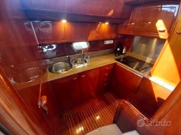 Bagno ospiti, Cabina interna equipaggio con bagno, Cabina equipaggio con bagno con ingresso dal pozzetto, Fly attrezzato con tavolo, mobile con lavello e frigo, zona prendisole.