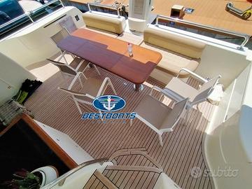 Pozzetto con tavolo e sedute, accesso dalla porta d'ingresso vi catapulterà nell'area dinette accogliendovi in uno spazio open space con vista a 270° grazie alle ampie vetrate, nel main deck è presente un grande divano con mobile tv, andando verso prua ci sarà un tavolo da pranzo con passaggio alla zona notte: cabina master, una cabina VIP e una terza cabina matrimoniale. Tutte le cabine con bagno privato, doccia e aria condizionata indipendente.