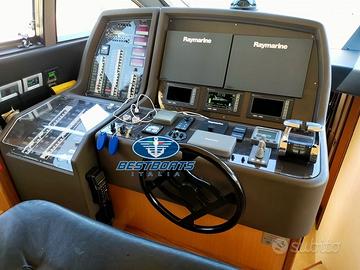 Pannello per la gestione di tutte le utenze; Allarme fumo/gas, Allarme motore, Allarme sentina, comando verricello Ancora, Doppio GPS Raymarine con diverse funzioni, Angolo barra, Bussola, Ecoscandaglio, Pilota automatico, Plotter, Radar, strumenti digitali per pressione olio, turbine, contagiri, ecc... Computer di bordo, Comando motori elettronico a leva, Contametri catena, Contamiglia, Radio VHF, Antenna radar, Display MAN, Elica di poppa e prua, Doppia timoneria + terza postazione nel pozzetto, Faro orientabile, Flap idraulici, Tromba