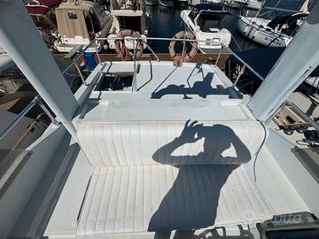 LAYOUT ESTERNO: Prendisole di prua, pozzetto a poppa con piano di calpestio totalmente rivestito in teak ,