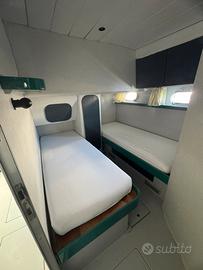 LAYOUT INTERNO: cabina armatoriale di prua, cabina con due letti singoli, dinette trasformabile con 2 posti letto , cucina con fuochi a gas , frigo, lavandino , bagno con doccia, wc elettrico e trituratore con scarico a mare.