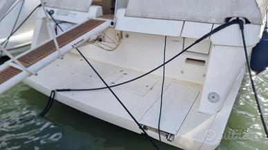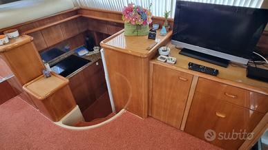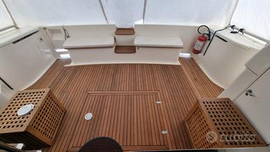 NOTE SUL PREZZO IVA Pagata - .. DATI PRINCIPALI Cantiere: Ferretti Yachts Modello: FERRETTI 46 Anno Costruzione: 2000 Lunghezza: 14,1 m Condizione: usato Stato conservativo: ottimo Tipologia: Flying bridge Codice: 837836 Si informa che i dati comunicati dal proprietario sono ritenuti corretti ma non garantiti e non contrattuali. Le fotografie utilizzate, se indicato, possono essere di repertorio. MOTORI Potenza: 2 x 480 Hp Modello: Volvo Penta Trasmissione: Linea d'assi + V drive Ore moto: 920 ABITABILITÀ Numero cabine: 3 Numero bagni: 2 Posti letto cabina: 6 Posti letto totali: 6 Posti letto marinai: 1 DATI TECNICI Larghezza: 4,6 m Dislocamento: 14.900 Kg Persone trasportabili: 14 Velocità massima: 26 Kn Velocità di crociera: 22 Kn Serbatoio carburante: 1.900 l Serbatoio acqua: 700 l Scadenza Rina: 2026 Bandiera: Italia Generatori: 1 x 9 kw - kholer STRUMENTAZIONE ELETTRONICA DI NAVIGAZIONE Angolo barra, Antenna radar, Bussola, Comando motori elettronico, Contamiglia, Ecoscandaglio, GPS, Joystick, Luci di navigazione, Pilota automatico, Plotter con antenna GPS, Radar, Radio VHF, Yacht controller. ALLESTIMENTO TECNICO E DI COPERTA Allarme motore, Allarme sentina, Alternatore, Ancora, Autoclave, Autogonfiabile (nuovo 2025), 5 Batterie, Caricabatterie, Doccia esterna, Elica di prua - bow thruster, Faro orientabile, Flap idraulici, Impianto antincendio, Lavaggio catena, Passerella (Idraulica besenzoni), Piattaforma, Pompa di sentina automatica, Pompa di sentina elettrica, Pompa di sentina manuale, Porta ingresso, Pozzetto Teak, Presa 220V banchina, Raddrizzatore, Rollbar, Salpa Ancore Elettrico, Scaletta da bagno, Selle per Tender, Tavolo pozzetto, Tromba, Winch tonneggio di poppa. DOTAZIONI DOMESTICHE DI BORDO Aria condizionata, Boiler, Cassaforte, Clima reversibile, Inverter, Prese interne 12v, Prese interne 220v, 2 WC marino elettrico. DOTAZIONI DI SICUREZZA Dotazioni di sicurezza entro 12 miglia, Zattera di