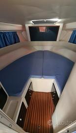 Cabina di prua con letto matrimoniale, bagno separato, cucina, dinette (trasformabile in letto) e seconda cuccetta matrimoniale.