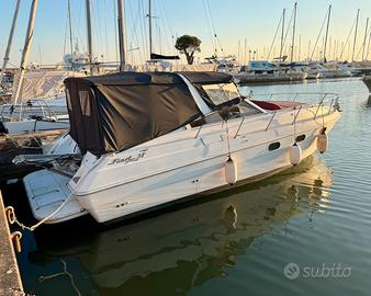 Ottime condizioni, VERSIONE CON ROLLBAR. Turbine - Eliche - Piedi - cuffie anno 2024, Batterie 2026 Anno 1990, 2x200 Volvo penta circa 800 ore DESCRIZIONE INTERNI - Cabina di prua con letto matrimoniale, bagno separato, cucina, dinette (trasformabile in letto) e seconda cuccetta matrimoniale. - Due frigoriferi, interno e uno esterno DESCRIZIONE ARMAMENTI - Turbine nuove (2024). - Piedi poppieri revisionati nel 2024 - Eliche dual prop nuove (2023) - Cuffie nuove 2024 - La cuscineria nuova (2023). - Il tendalino nuovo Grigio con chiusura anche invernale ( struttura in acciaio) 2023. - Ampio prendisole a prua e comoda dinette per 8 persone a poppa, trasformabile in prendisole. DESCRIZIONE STRUMENTAZIONE - Strumentazione GPS + Ecoscandaglio Fishfinder - Bussola - Batterie nuove 2026 Escluse commissioni