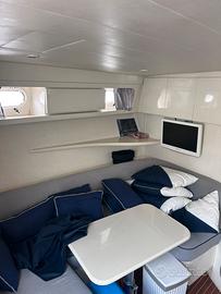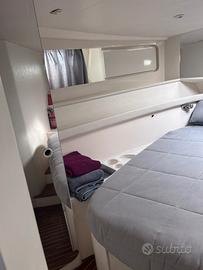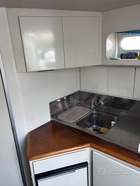Dotata di una cabina armatoriale, una seconda cabina 2 posti letto e una terza cabina da 1 posto, cucina e lavandino, 2 frigoriferi e ghiacciaia esterna.
