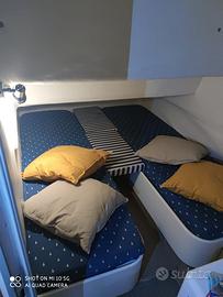 * Layout Interno Intelligente: Il Fiart 35 Genius è noto per la sua distribuzione degli spazi interni, che massimizza la vivibilità. La versione con 3 cabine e un bagno con doccia offre ampio comfort per gli ospiti. La dinette è trasformabile per ulteriori posti letto. L'altezza interna è generosa, rendendo la permanenza a bordo molto confortevole.