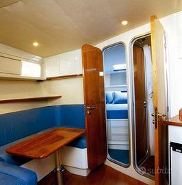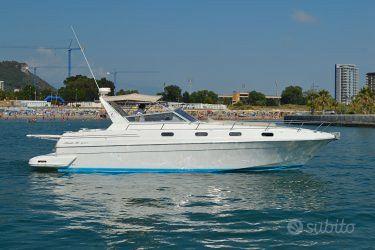 Fiart 35 Genius anno 1993 motori 2 Volvo Penta 231 Hp pozzetto in teck versione 3 cabine + bagno. Boiler cucina con 3 fornelli a gas+ 1 piastra elettrica. inverter 700Watt, carica batterie ,flaps idraulici pilota automatico Raymarine, radar Furuno, GPS /ECO Lowrence Elite 9 FS con trasduttore 3-1, WHF,elica di prua, dispositivo per spegnere i compressori volumetrici quando si naviga in dislocamento ,Tender Arimar chiglia rigida 2,20 mt+ motore JOHNSON 4 hp. zattera autogonfiabile per 10 persone, passerella idraulica Besenzoni. Alla barca è stata sempre fatta la manutenzione per averla sempre efficiente è stata disimmatricolata e quindi è un natante che non richiede passaggio di proprietà. La barca attualmente monta eliche B5 e nel prezzo sono incluse 2 set di eliche B4 e 2 set di eliche B6 perfette come nuove, che vi consentono poter trovare l'assetto più adatto a voi.