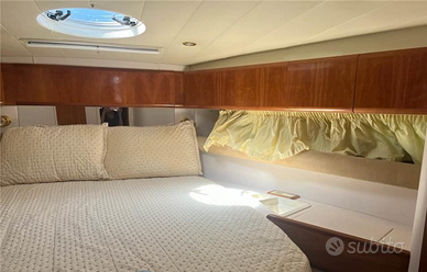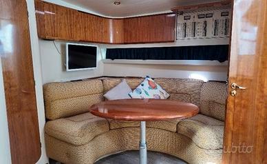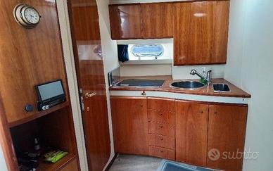 Il FIART 40 è un’imbarcazione dallo stile classico, ma sempre attuale, ideale per armatori che preferiscono la filosofia Open, ma non amano mode e design passeggeri. Il 40 Genius è il prodotto di uno dei cantieri italiani più antichi e di tradizione, che ha scelto per le sue imbarcazioni una linea molto classica, ma intramontabile. A dare personalità e classicità al 40 Genius sono il ponte di prua, molto ampio e pulito, così come il parabrezza dalle forme affilate. Il pozzetto è il centro del living esterno e può assumere diverse funzioni grazie alla sua versatilità. In sintesi, il Fiart 40 Genius è una barca dedicata ad armatori amanti delle belle forme più che delle mode. La carena a V variabile, dotata di due pattini longitudinali di sostentamento, si è rivelata equilibrata e stabile in navigazione. INTERNI3 cabine 2 bagniCabina prua con letto matrimoniale a isola, cassettiera e armadio2 cabine ospiti doppie Dinette trasformabile in cuccetta doppia con tavolo abbattibile e divano a CBagni completi di lavabo, wc manuale e box doccia separatoAngolo cottura completo di doppio lavello, 3 fuochi (2024) forno a microondeSTRUMENTAZIONEBussola -Ecoscandaglio -VHF - Plotter GPS -Elica di prua -Pompa di sentina manuale ARMAMENTOAncora - Catena -Pozzetto in teak con accesso sala macchine - Tavolo pozzetto idraulico -Scaletta retrattile plancetta - Doccia esterna plancetta poppa -Lavello in pozzetto -Passerella idraulica - Presa elettrica da banchina -- Cuscinerie esterne - faro proiettore LAVORI RECENTI Ricostruzione di tutte le cornici perimetrali del teak nel pozzetto, Pulizia degli scambiatori e dell'intercooler, sostituzione delle turbine e dei Raiser, Revisione completa di entrambi i piedi poppieri con sostituzione di ingranaggi – assi - paraoli - cuscinetti, ecc.