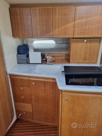 Ampia dinette con cucina attrezzata, piano cottura elettrico, e zona living molto comoda e vivibile. Non mancano vani portaoggetti,mobili e ripiani per maggior comfort. Finiture legni pregiati, tessuti raffinati, layout funzionale e confortevole.
