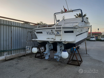 Fiart Thunder 28, anno 1988, due motori volvo penta turbodiesel da 150 cv l'uno. Piede monoelica, boiler acqua calda esterno, vhf, ecoscandaglio, wc elettrico, piano di cottura e frigo esterno. La barca ha bisogno di una bella lavata e via.