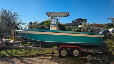 Come da titolo vendo fisherman 23 WA Scafo a V profondo ottime doti di navigazione. Impianto elettrico rifatto 2025. Strumentazione elettronica simrad s2009 e sonda passante. T top in acciaio con chiusura invernale, serbatoio carburante con tappo d'imbarco 150 litri serbatoio acqua dolce con tappo d imbarco 50 lt . Due batterie 80a pompa di sentina automatica e comando, autoclave acqua dolce. Cabinetta con gavoni molto spaziosa per usare come ripostiglio. 10 portacanne. Motore Yamaha 150cv HPDI anno 2005 con 795h appena tagliandato 2025 funzionante in tutte le sue parti. La barca è pronta mare. Velocità di crociera 23/25 nodi con un filo di gas, velocità max oltre i 35 nodi. No scambio no permute. No perditempo o curiosi. CARRELLO NON IN VENDITA NON COMPRESO.