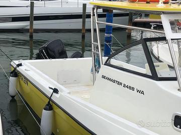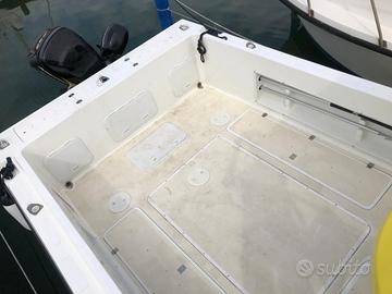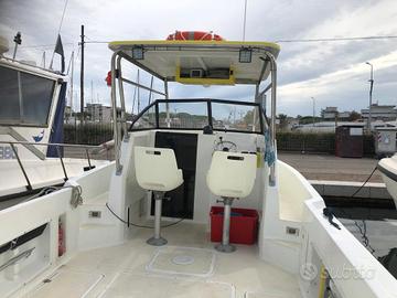 Fisherman americano Renken Seamaster 2488 Walkaround, anno 1991. Peso 2600 kg, Lunghezza F.T. 7,24 mt (max 8 mt) Larghezza 2,58 mt. Refitting completo anno 2022. -Verniciatura integrale: fondo epossidico + fondo poliuretanico + smalto Isofane Marine Stoppani. -Impianto elettrico nuovo: interruttori e cavi. -Impianto idraulico nuovo: tubi e Pompe idrauliche di cui: 1 pompa autoclave acqua salata, 1 pompa autoclave acqua dolce, 2 pompe sentina e 1 pompa autoadescante in pozzetto di raccolta. - 5 portacanna nuovi a incasso inox con raccolta acqua in pozzetto. - Hard-top vetroresina e struttura in acciaio inox. - Bracket scatolato acciaio inox. -Guida Idraulica nuova Ultraflex -Serbatoio Carburante in Alluminio 450 litri. -Serbatoio Acqua dolce 130 litri, con doccetta. - Faro orientabile di prua. 2 Faretti di Poppa. - GPS Lowrance Hook 7, carta Navionics Platinum -ECO Garmin. -VHF . -Consolle con doppia manetta. -Motore principale Mercury Optimax 225, anno 2002, (ore 550), riverniciato 2023. Pompe carburante nuove. Motorino trim nuovo. -Motore ausiliario (con barra di accoppiamento), Mercury 8 cv 4 tempi, anno 2007. Velocità Massima 34 nodi. Velocità di Crociera 24 nodi. Imbarcazione con bandiera polacca. Attualmente in acqua a Marina di Cattolica. Scrivere solo se interessati.