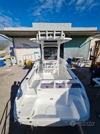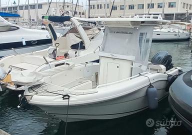 Bellissimo Walkaround del cantiere Seagame eccellenza italiana nella produzione dei Fisherman ha progettato questo imbattibile modello Starfish 200 che si è rivelato campione assoluto nella pesca sportiva. Barca come nuova con 20 ore di navigazione, perfettamente accessoriata, prezzo iva inclusa. Barca fatturabile. Anno di costruzione: 2025 Lunghezza: 6,03 m; Larghezza: 2,41 m Pescaggio: 0,47 m Portata persone: n. 8 Motori: 1 Yamaha F150LCB, fuoribordo del 2025, 20 ore di moto, serbatoio da 150 Lt; Impianto idraulico: serbatoio acqua dolce 80 lt, 2 vasche del vivo, pompa per il lavaggio. Impianto elettrico: 3 batterie da 120 Ah ciascuna di cui 1 per motore, 2 per servizi, 1 batteria al litio da 100 Ah del 2025 dedicata al motore elettrico, caricabatterie, prese da 12 V, salpancora elettrico, luci di via, luci led su T-Top. Strumentazione: Garmin plotter cartografico con schermo da 12 pollici, 2 trasduttori di cui uno passante per profondità i da 1 Kw, 1 trasduttore di poppa per il down and side imaging. Armamento: manette elettroniche; 2 vasche del vivo, vasca del pescato a prua e 1 vasca del pescato alloggiata in pozzetto, luci di via, chiusura trasparente pozzetto per navigazione invernale, tendalino di poppa, cuscineria completa di prua con estensione centrale, grip con motivo batimetrico, seduta di poppa con cuscineria accessorio aggiuntivo, vari vani stipetti sotto seduta di guida, 8 porta canne su T-Top e pozzetto; 2 pompe di sentina automatica e manuale, 2 prese per mulinelli elettrici una per murata, stereo bluetooth, motore elettrico di prua Garmin interfacciato con il plotter cartografico e telecomando a distanza, lavandino, doccetta di poppa, pompa per lavaggio. Prezzo: euro 69.000 IVA inclusa + 5% commissioni di vendita.