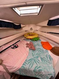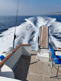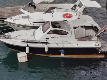 Per raggiunti limiti di età (83 anni), vendo cabinato 5 p. letto FJORD 27"(ca 8,90) esentasse perché è inferiore a 10 mt. Monta 2 motori VM diesel da 110 Cv. cad. del 2013 in linea d'asse, vel. di crociera 18/20 kn. e consumi 30 lt/h. La barca è dotata di verricelo el. ed ancora Bruce con 50 mt. catena in acciaio zincato più ancora di poppa, entrambe provviste di salva ancora per recupero della stessa se incagliata. All'interno, 2 cabine separate con letti matrimon., Toletta con porta, water marino e lavello; cucina a gas inox a 2 fuochi e bombola da 5 kg., lavello inox e frigorifero. Cuscinerie, spalliere e poggiatesta in ecopelle panna, come pure poltroncina di pilotaggio e 2 panche a poppa, tutto nuovo, 2 portacanne inox. Consolle ridisegnata totalmente con volante nuovo, radio Boss Marine ed mp3; strumentazioni aggiunte nuove, GPS, Ecoscandaglio/Sonar Raymarine mod. Dragon a colori, manometri vari, orologio, igrometro e temperatura, come pure il comando a due leve per l'invertitore dei 2 motori. Tutte le strumentazioni sono state aggiunte nuove. C'è la predisposizione per il montaggio, come da foto, di 2 pannelli solari, sul tettuccio, da 200 Watt cad. con regolarore ed inverter per la carica batterie in alto mare. Tutto ciò è completamente OMAGGIO all'acquirente, resta solo il montaggio da pagare. C'è l'attacco alla colonnina del porto per caricare le batterie e serbatoio per l'acqua potabile da 120 lt., la doccia esterna e la predisposizione per il montaggio derll'elica di prua che facilita le operazioni in porto, scaletta da bagno, serb. carburante da 300 lt.; la passerella elettrica è retrattile con telecomando. La barca è al coperto in cantiere a Tricase. Per visionarla contattatemi al n. 3911225424. Il prezzo è di € 34.000. Prego solo di non essere contattato da chi non è seriamente interessato. Dott. Pier Luigi Catalano.