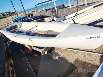 Vendo barca a vela flying junior CNA, completa di tutto, compreso nel prezzo carrello da alaggio autocostruito. Scafo in ottime condizioni, vele in discrete condizioni. Motivo del prezzo basso è una riparazione dell'albero fatta all'altezza delle crocette.