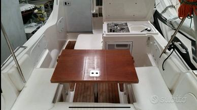 -luglio 2024 sbarcato motore e sostituito i seguenti componenti: collettori e riser nuovi, pompa acqua e girante nuova, motorino di avviamento nuovo. Supporto piedi motore nuovi, staffe supporto motore rifatti in acciaio inox, pulegge tendi cinghia nuove, cinghia nuova, tubi acqua nuovi, soffietti nuovi, revisione piede. Oltre tagliando completo con sostituzione candele, olio piede, olio servosterzo, olio trim, filtri benzina e filtro olio. Tutto documentabile con fattura, pesa totale 9000,00 euro