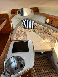 Barca in buone condizioni,con 4posti letto comodi,cucina con lavello e fuoco,bagno separato con wc elettrico,ampi spazi esterni con divano a C trasformabile in prendisole,inverter1500/3000w,radio bluetooth con 4casse,gps/eco raymarine da7" touch screen montato nuovo primavera 2025,telo chiusura camper e tiemo,dotazioni di sicurezza entro 12 miglia 2025,serbatoio benzina200 litri e acqua 90,presa corrente in banchina,2 batterie 100ah