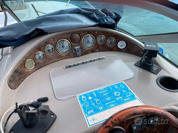MANUTENZIONE Nel 2021 sostituiti: motorino d'avviamento, caricabatterie, alternatore, 2 batterie servizi, collettore-riser, pompa acqua riciclo, pistone e sensore Trim, boiler, salpa ancora elettrico Quick, Furuno FCV-620, lucidatura scafo Nel 2022 carena portata a gel-coat con ripristino primer e antivegetativa. Nel 2023 sostituiti: pompa acqua mare, batteria motore, autoclave, radio, rifatto cardano. Nel 2024 sostituiti: pompe benzina, pistoni flap.