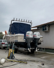 Vendo barca americana four winns senza motori attrezzata da pesca con vasca del vivo timoneria idraulica guidabile con joystick elettronicamente,completamente richiudibile,panca pieghevole a seconda dell' uso che si voglia fare,pannello solare 2 batterie,prese elettriche 15 porta canne installabile un singolo motore o doppio,barca molto stabile e una vera arma da guerra per la pesca al tonno o altro
