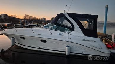 Natante in perfette condizioni, tagliandato regolarmente, del 2006 solo lago, lungo f.t. 11 (non targato) x 3,56 di larghezza (una delle più larghe della categoria), elica di prua, GPS, ecoscandaglio, aria condizionata, verricello elettrico, frigo, ghiacciaia, zona living, bagno, 6 posti letto, portata 12 persone, due volvo penta a iniezione, 650 h solo lago. Vendo per passaggio categoria superiore. Pronta alla boa.