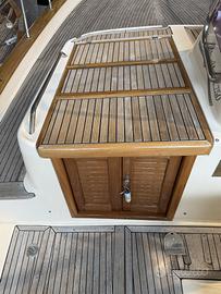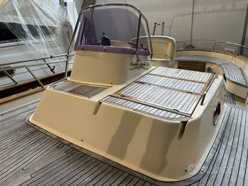 Allarme motore, Allarme sentina, Alternatore, Ancora, Autoclave, Batterie, Camminamenti laterali in teak, Caricabatterie, Luci di cortesia, Piattaforma, Pompa di sentina automatica, Pompa di sentina elettrica, Ponte in teak, Pozzetto Teak, Presa 220V banchina, Rollbar, Salpa Ancore Elettrico, Scaletta da bagno, Tromba.