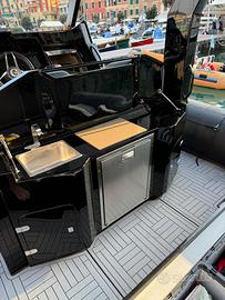 2 grandi zone prendisole prua e poppa, divano e sedute guida sportive, mobile cucina, ampio bagno/ spogliatoio.