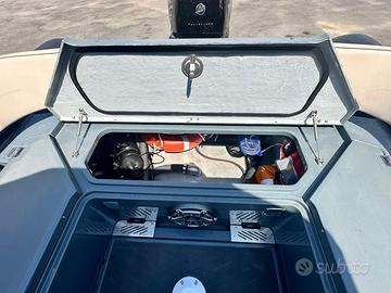 G-TENDER OTTO Anno 2021 Lunghezza mt 8,70 Larghezza mt 3,75 Portata 18 pax Categoria B Tessuto Carbon Look Serbatoio carburante Lt 420 Serbatoio acqua Lt 80 Motore Mercury Verado 400 CV Ore moto 400 circa Impianto stereo Fusion 4 Casse JL Audio 1 Sub JL Audio Tavolo di poppa T-top Luci calpestio a LED Teak sintetico EVA FOAM Frigo/Ghiacciaia di prua Autopilota Garmin Eco-GPS Garmin VHF Garmin Active Trim Mercury Verricello elettrico Visibile Lazio (Terracina) Richiesta EURO 98.000 + commissioni vendita 5% Dati ritenuti corretti ma non contrattuali, commissione di vendita a carico dell'acquirente, gli acquirenti hanno diritto a periziare l'imbarcazione a loro spese.