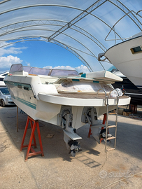 Imbarcazione in ottimo stato con motori fatti nuovi 2024 e piedi completamente revisionati anno 2024, da fare solo qualche piccolo lavoretto con doppio prendisole, verricello elettrico revisionato e tavolo per pranzare, plancetta maggiorata in teak