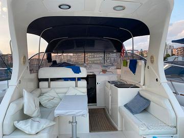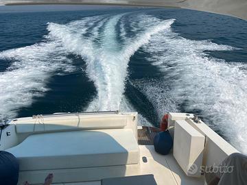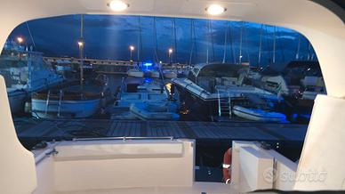 Dotazione armamento e accessori: dotazioni di bordo e di sicurezza quelle presenti a bordo, ROLL BAR in VTR con tendalino parasole con arcata in acciaio, chiusura di navigazione, tendalino poppa, pedana di poppa rivestita in TEAK, mobile pozzetto con lavello, piano cottura e frigo, telo copri comandi.