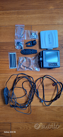 Perfettamente funzionante con scatola originale, accessori garmin per il montaggio,manuali d'uso e trasduttore di poppa incluso,cartografia mediterraneo bluechart.