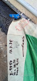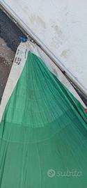 Gennaker usato ma in buone condizioni (salvo una piccolissima riparazione). Misure: inferitura 14,75, base 9,06, numero velico 5757. Nel prezzo è inclusa la calza da riparare