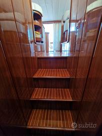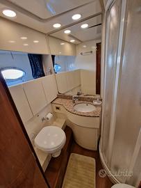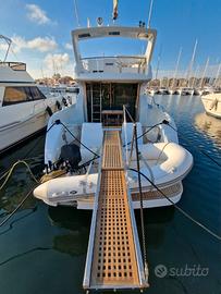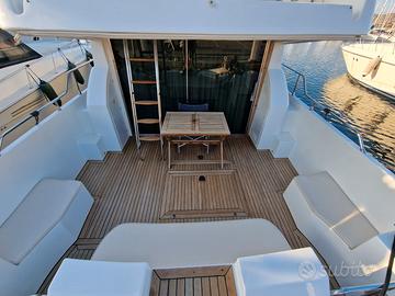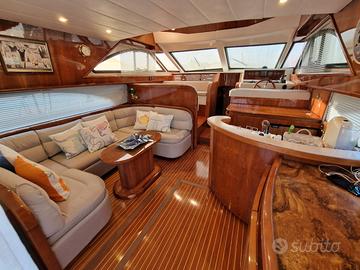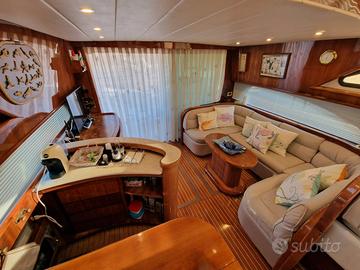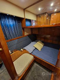 Composta da dinette interna con angolo cottura 4 fornelli ad induzione, microonde, 2 frigoriferi TV 40 pollici, plancia comandi con elica di prua.