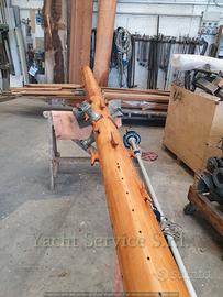 Chiglia massello in Iroko, ordinate piegate a vapore in acacia, fasciame longitudinale in mogano e Iroko, bagli lamellari in Mogano, ponte in Teak, strutture esterne in Mogano, interni tutti in Mogano, Alberi e boma in legno Silver Spruce.