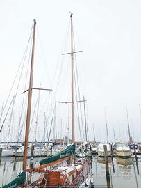 Questo Yawl di 14,75 metri si riconosce a prima vista, prua alta, baglio medio, e poppa affilata con lo specchio minuscolo, caratteristico di alcuni progetti di Giles