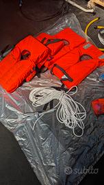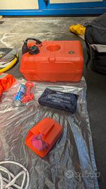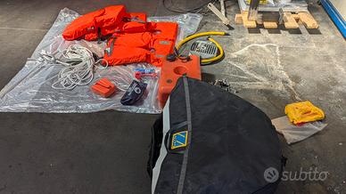 kit completo per navigazione entro le 3 miglia, con 4 giubbotti 100 N, tromba, ancora e cima, razzi. vendo anche il serbatoio da 22 litri più una pompa a piede per gommoni. tutto insieme 100 euro. separatamente la borsa completa viene 80 euro serbatoio 20, e la pompa alta pressione 30 euro.