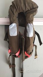 Giubbotto salvataggio con sistema autogonfiante tramite il tiraggio di due cordicine, che azionano le cariche di aria compressa ..l articolo è nuovo e custodito nellaa sacca protettiva.ed è originale al 100%