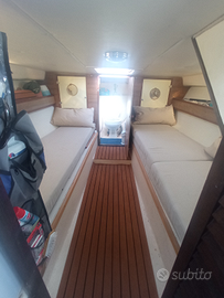 Barca dell'86 motori del 2000 ,trasporto 8 persone. Negli ultimi 2 anni è stato completamente refittato esteticamente e tutti gli impianti di funzionamento come quello elettrico completamente nuovo terminato a maggio 2025,GPS ecoscandaglio due in uno da 9". Barca veloce crociera 25/30 nodi con media di 70/80lt.h (Fiumicino -san felice circeo-ponza in 2h40m). massima 40nodi 2 motori Mercury offshore eliche acciaio 200cv 2t V6 a carburatori leggeri auto miscelanti con taniche olio da 8lt e facile gestione. Dotata di tutti i confort per crociere di qualche giorno,ad esempio, pannelli solari per i servizi e chiusura totale modulare Nuova di un anno ,cucina con bombola gas,wc scarico diretto a mare. Il tavolo grande per 6 persone centrale arriva a livello per diventare un unico grande prendisole o dormirci letto king size!anche i due lettini singoli all'interno si possono unire in un unico matrimoniale. Gruette porta tender con tender di 1,80mt e staffa porta motore tendere nel Govone nascosto. Spesi moltissimi soldi per farla su misura con tutti i confort vendo esclusivamente per cambio tipologia. Contattatemi solo quando realmente interessati e sarò disponibile per ogni domanda o visione sul posto. Fiumicino, Primo contatto solo mail