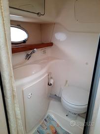 Barca e motore anno 1999 con motore volvo penta ad41pa 200 cv con 835 ore di funzionamento e piede 290 dual prop con eliche d'acciaio. Velocita crociera 21 nodi circa (consumo 1 lt a miglio) e max 29 nodi. Cabina a prua con letto matrimoniale e divano letto per n. 4 posti totali, toilette separata con WC. Trim, flaps, ecoscandaglio, GPS, radio cb e vhf, radio FM eTV, fornello a gas due fuochi con lavandino, frigorifero, pannello solare 100 watt. Portacanne, salpa ancora elettrico, scaletta tetto, tromba, termoventilatore. Doccetta esterna, pompa lavaggio pozzetto, n. 4 pompe di sentina, prese interne 12 volts e 220 volts, presa banchina, presa pozzetto per mulinello elettrico, caricabatteria e inverter. Cuscineria completa interna ed esterna, fly prendisole tetto cabina con n. 4 cuscini e telo di copertura nuovo, n.2 serie complete teli copertura integrale pozzetto (campeggio nautico), tendalino pozzetto e teli copertura vetri. Barca rimessata annualmente e ormeggiata al fiume garigliano periodo maggio/settembre. Attualmente in secca visibile previo appuntamento. Barca carrellabile con rimorchio 3500 kg. No scambi. Contattare solo interessati.