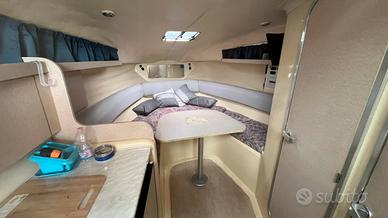 Ampia cabina matrimoniale, tetto alto , bagno separato, cabina ospiti di poppa con porta separata, frigo interno in salone con cucina