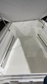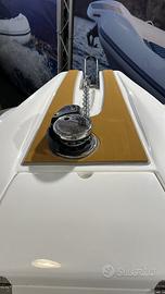 La consolle richiama le linee e le forme del fratello maggiore 82, a prua trova posto un ampio prendisole, sotto il quale è stato ricavato un ampio gavone controstampato con due tasche laterali portaoggetti.