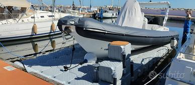 Il gommone in ormeggio rimane fuori dall'acqua su piattaforma galleggiante, questo garantisce una carena sempre pulita ed evita di dover applicare vernice antivegetativa ogni anno.