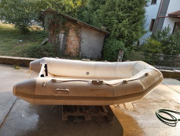 vendo gommone da 250 con chiglia in vetroresina . Lo vendo ad un prezzo irrisorio perchè è rattoppato in più parti e ha delle micro perdite ma rimane gonfio per quasi una giornata di pesca dopodichè va fatta qualche pompata.