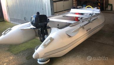 Vendo gommone Ozeam 3.40m con motore Ozeam 3.5 cv 4 tempi con libretto . Il tutto in perfette condizioni, usato pochissimo, sempre tenuto gonfio. Fornisco anche sacca porta gommone, pompa per gonfiaggio ,ruote, remi e due salvagenti.