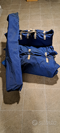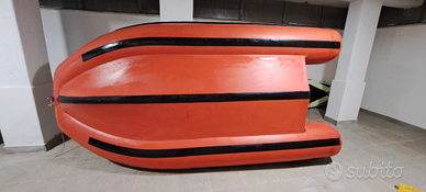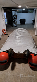 Gommone Marshall M40 smontabile, racchiuso in tre sacche quando chiuso. Tessuto in neoprene, chiglia in legno, come nuovo, completo di ruote di alaggio e coprigommone.
