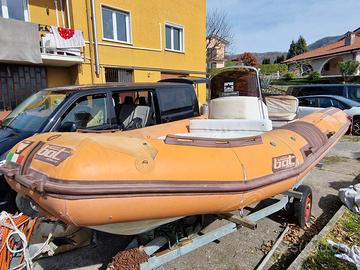 Vendo gommone 4,5 metri Marca BAT modello GRIFO usato sempre e solo al lago in acqua dolce, ben tenuto e con tubolari che restano gonfi e senza perdite. Viene venduto completo di motore 737 evinrude 40cv 2tempi con trim elettrico appena revisionato. Incluso nel prezzo carrello da alaggio Non omologato per circolare, ma perfetto per lasciare il gommone su terreni privati. Gommone visibile a Ello (10 minuti da Lecco)