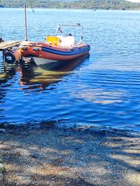 5 mt. c.a. X 2 mt. c.a. omologato 8 posti motorizzato con motore Enviruede 40cv 2 tempi con miscelatore automatico, (serbatoio benzina in pvc 25lt. Con galleggiante a bordo dello stesso) serbatoio olio motore 10lt. C.a.